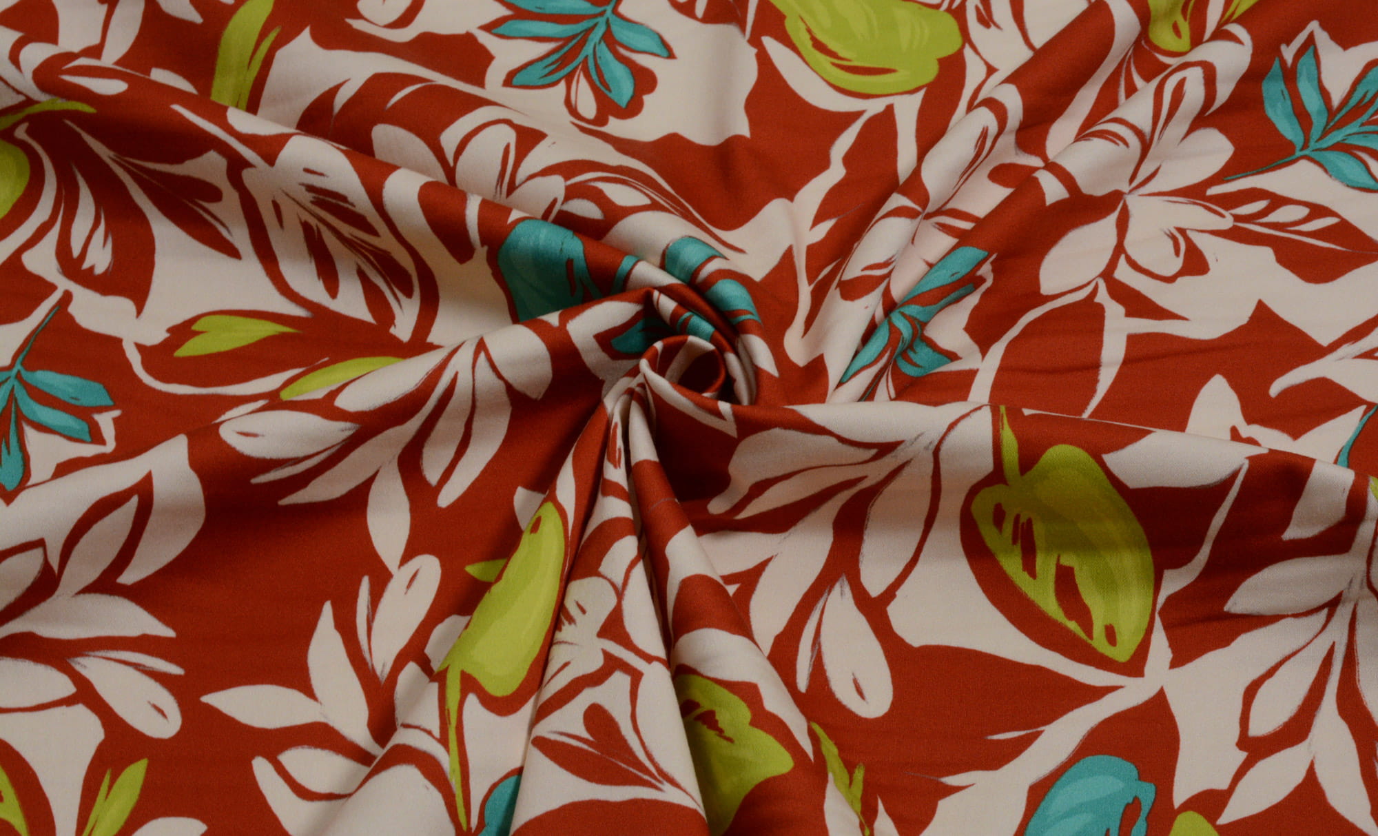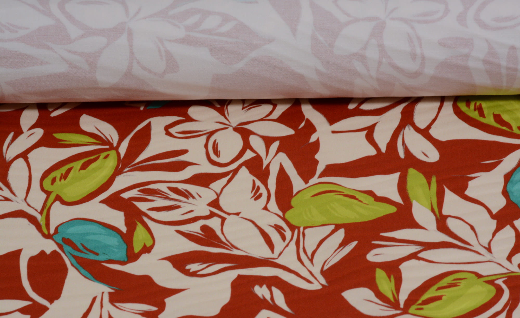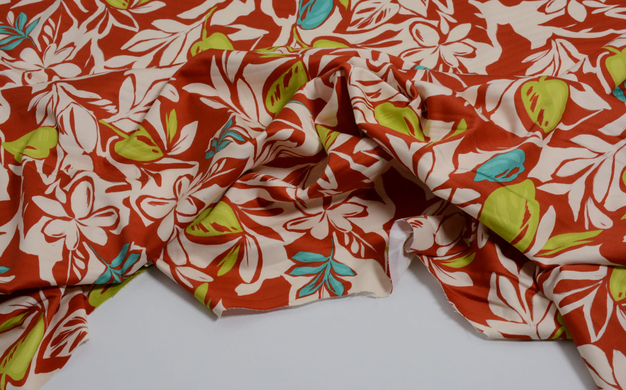 Tkanina Bawełniana z Elastanem w Czerwonym Kolorze w Roślinny Wzór