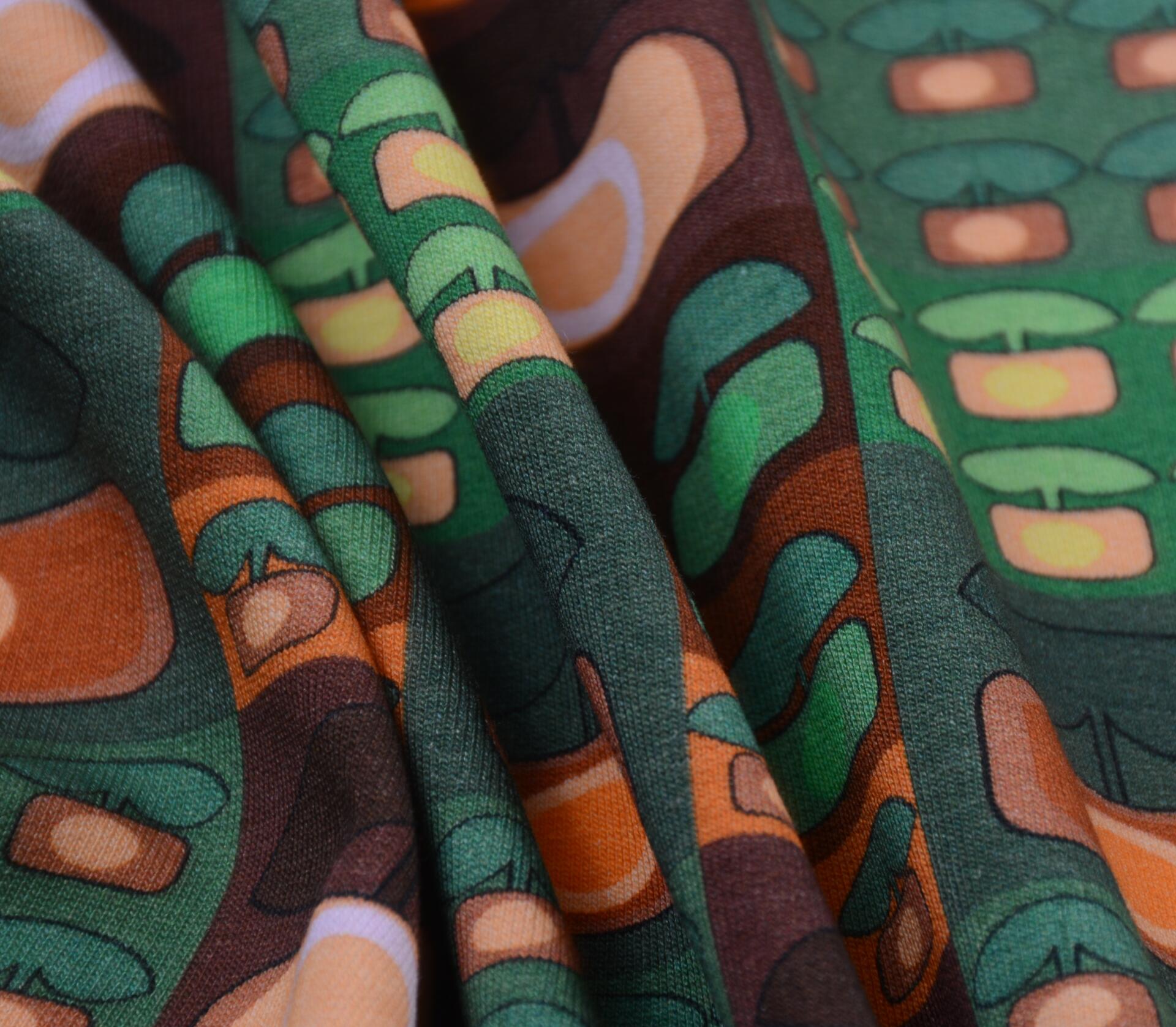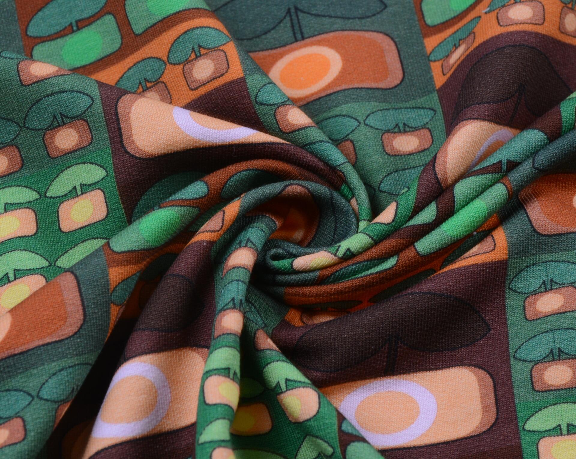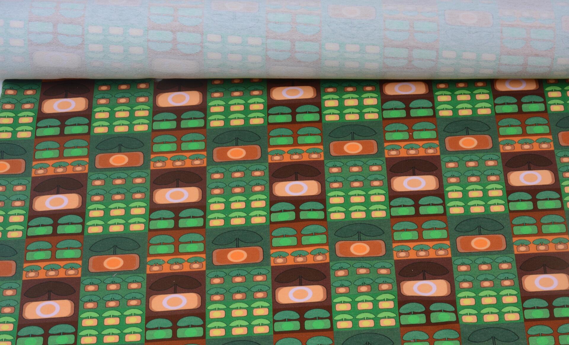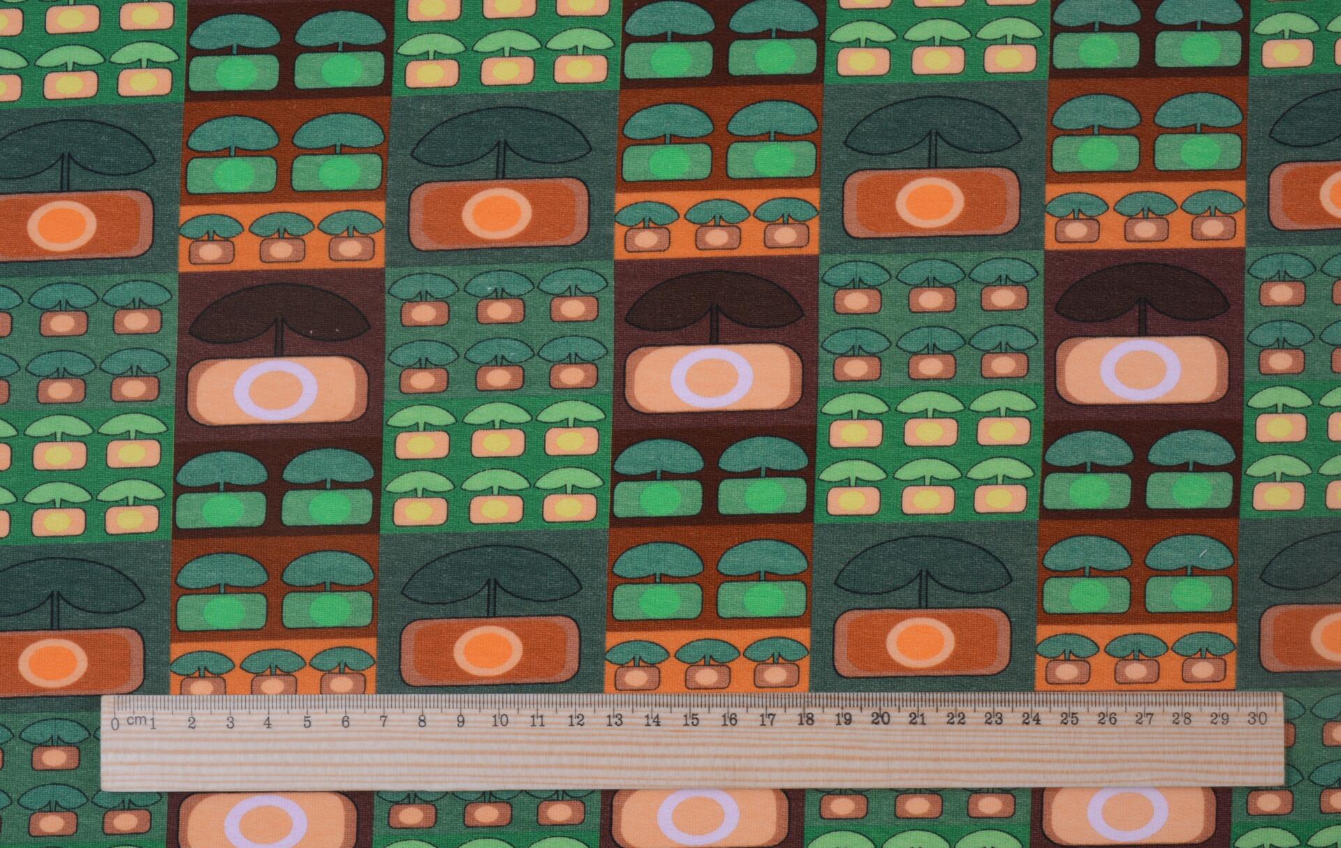 Dzianina Bawełniana Zielona Wzór Geometryczny
