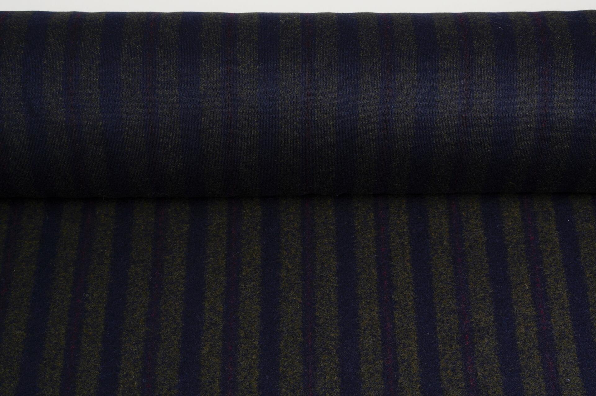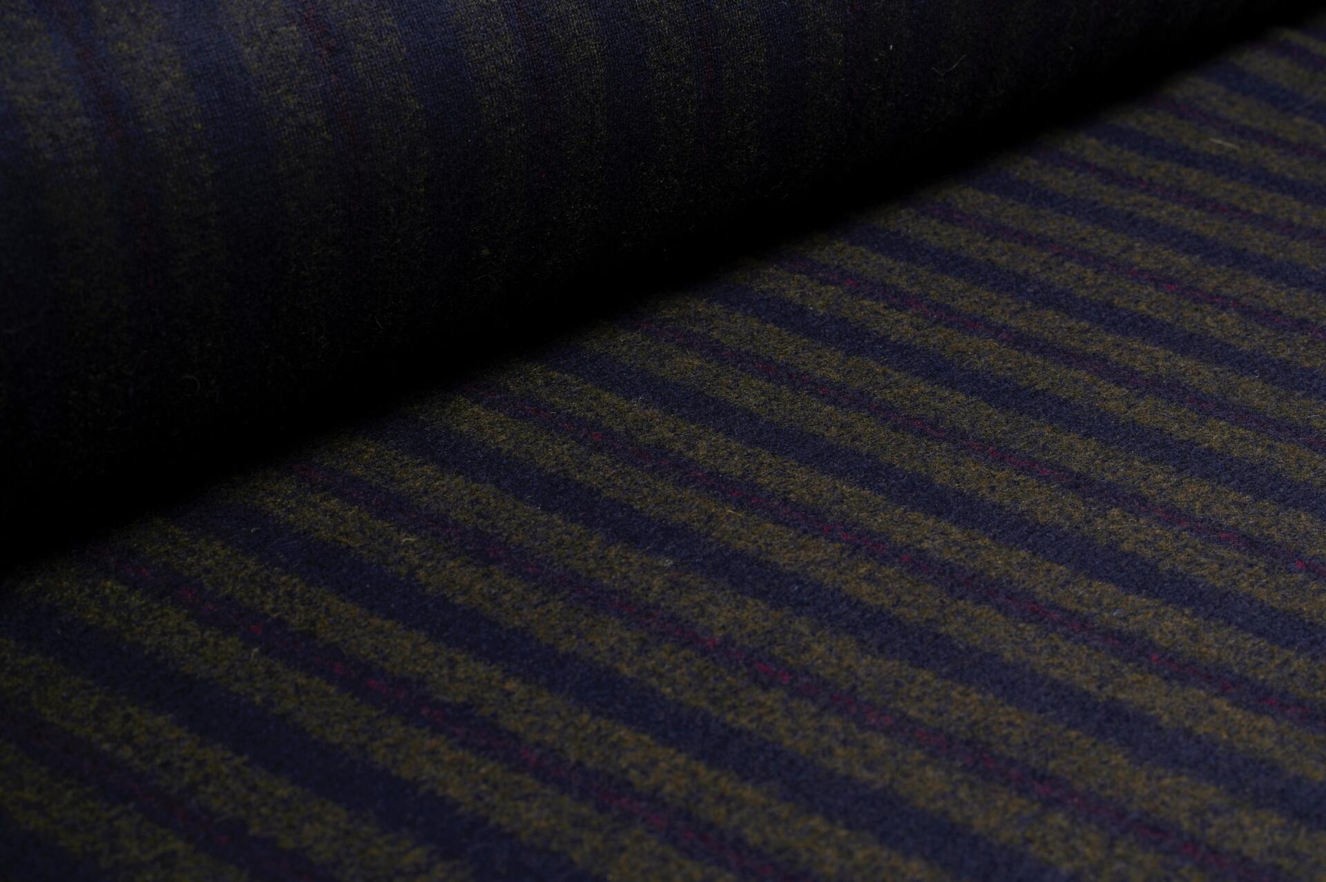 Dzianina Wełniana z Poliamidem w Pasy Granat, Szarość i Fioletowa Poświata