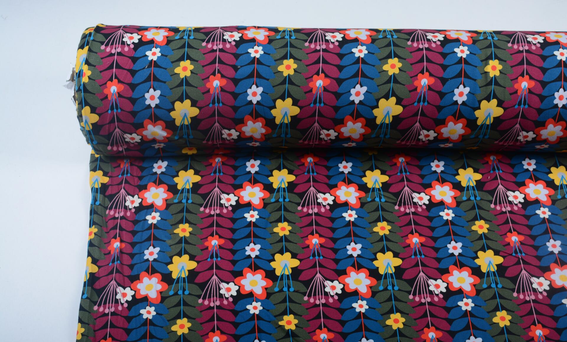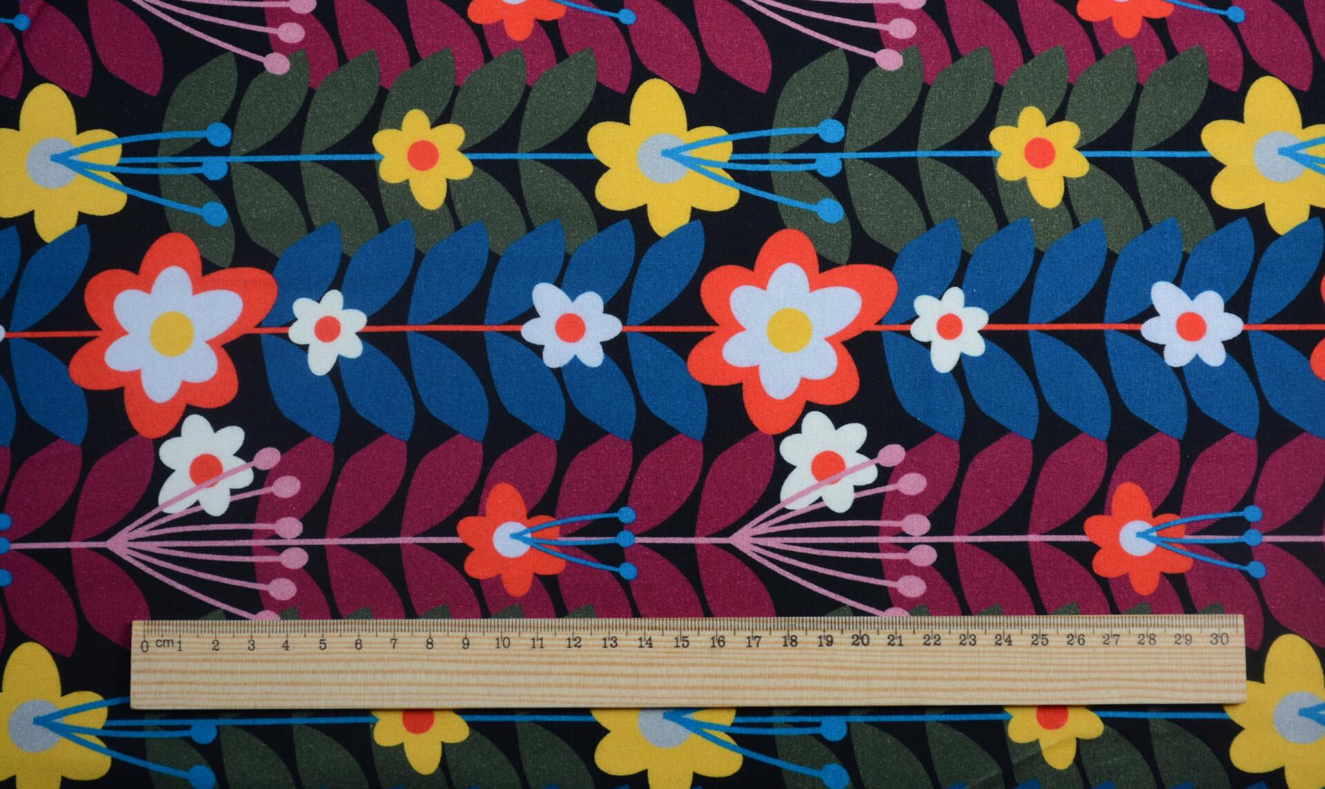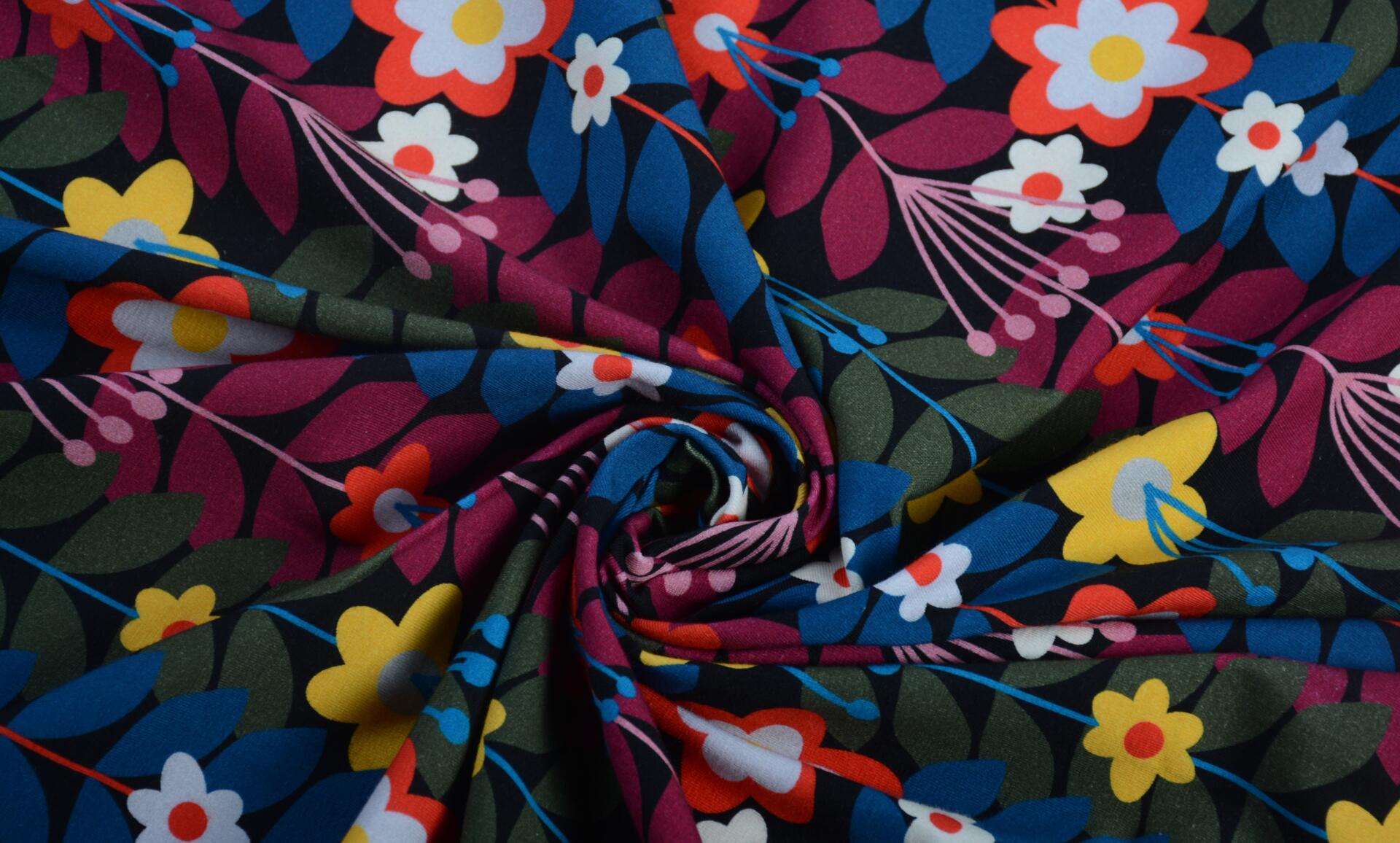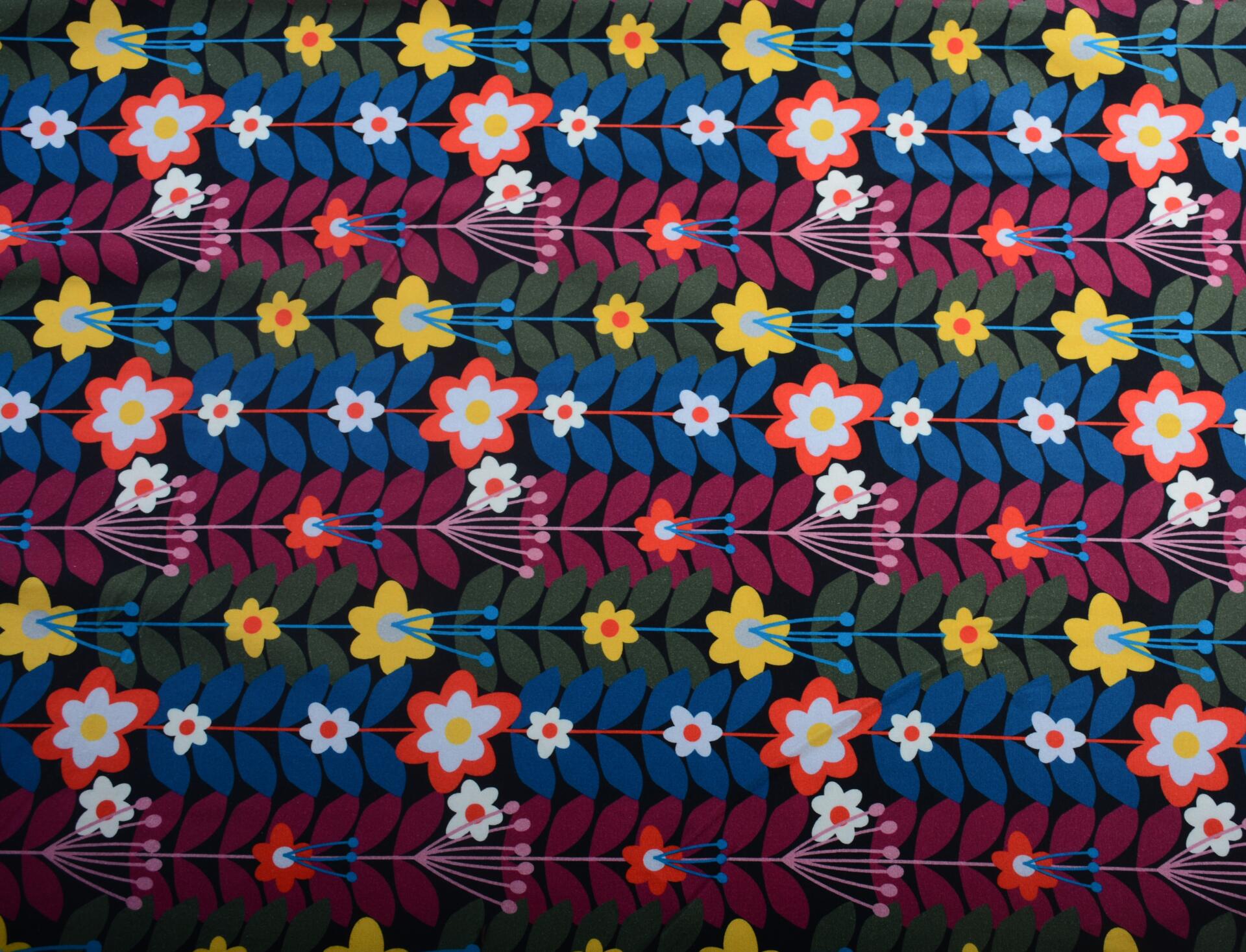 Dzianina Wiskozowa Kolorowe Kwiaty i Liście