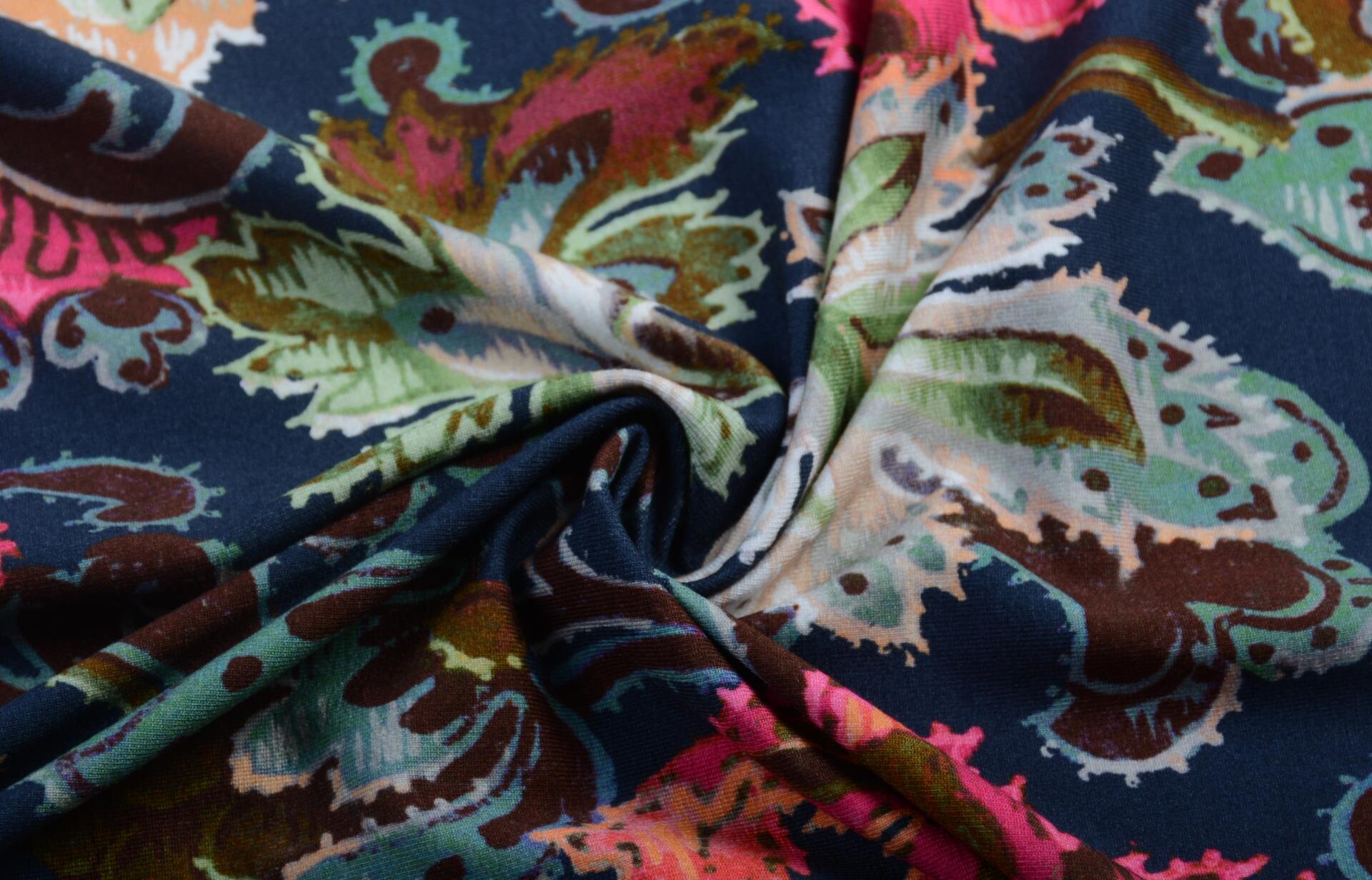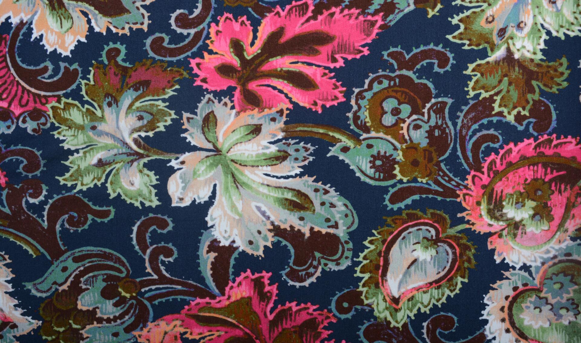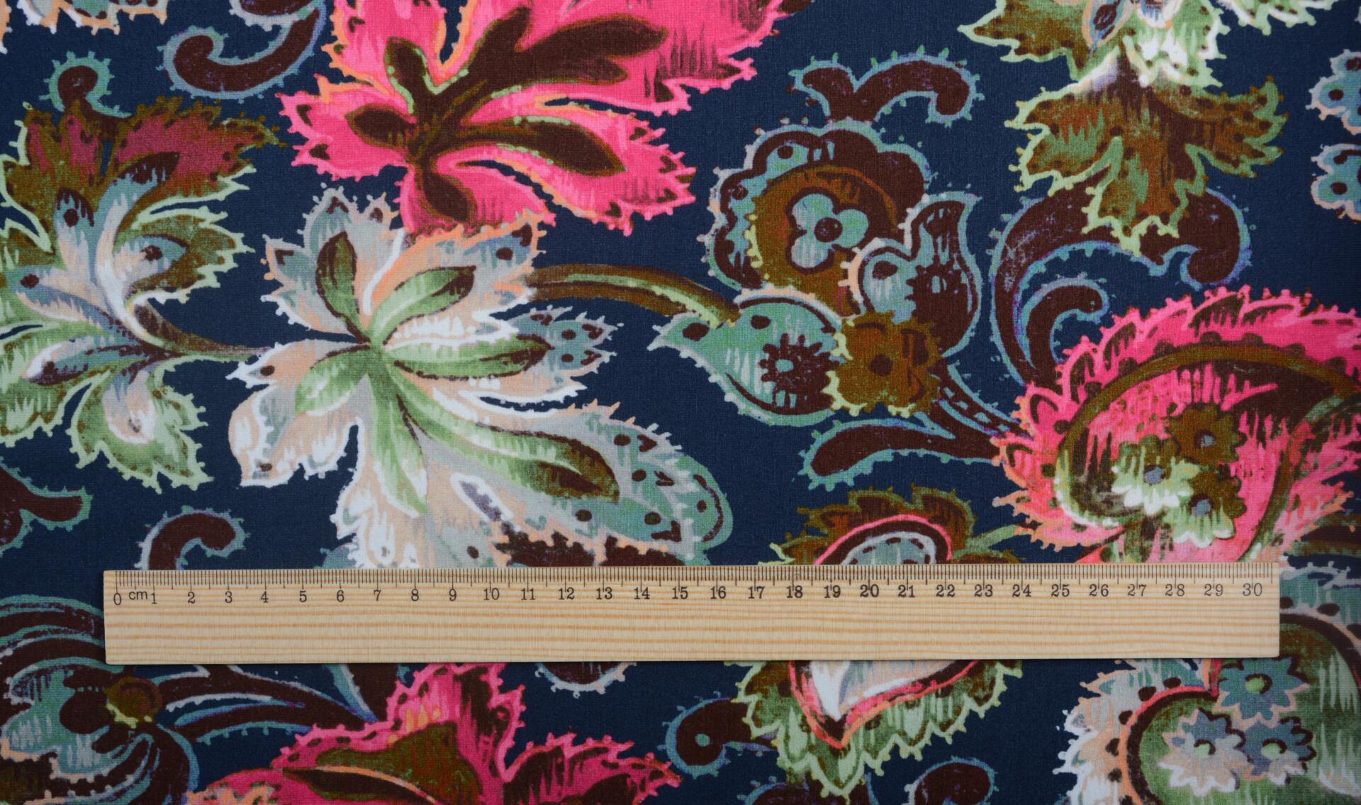 Dzianina Wiskozowa Ciemny Granat Kolorowe Kwiaty