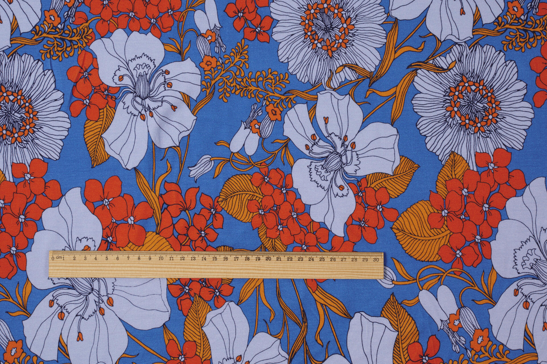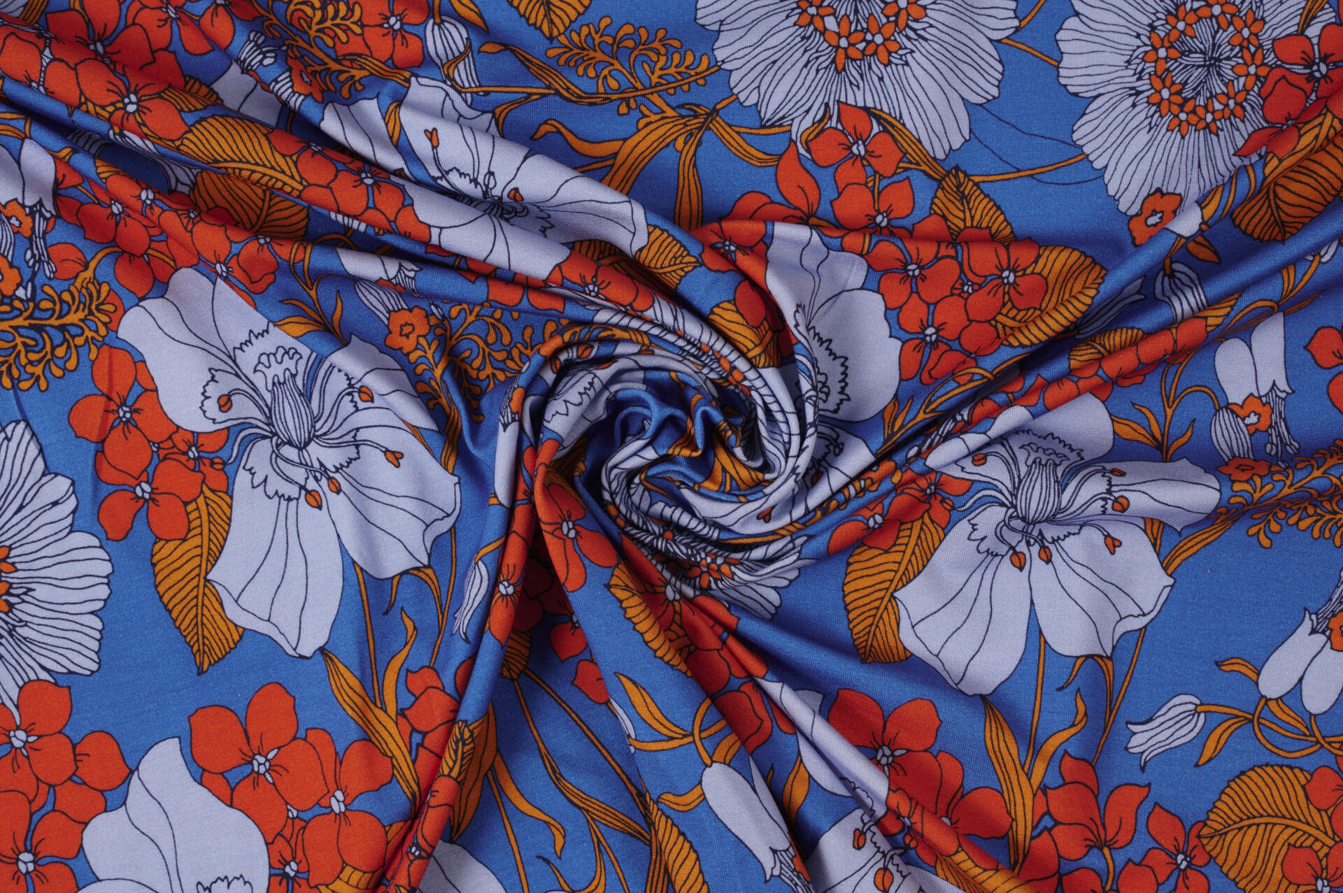 Dzianina Wiskozowa z Elastanem w Różnokolorowy Kwiatowy Wzór