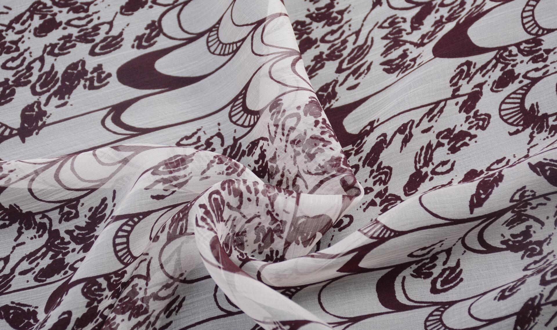 Szyfon Jedwabny Biały Brązowe Kwiaty