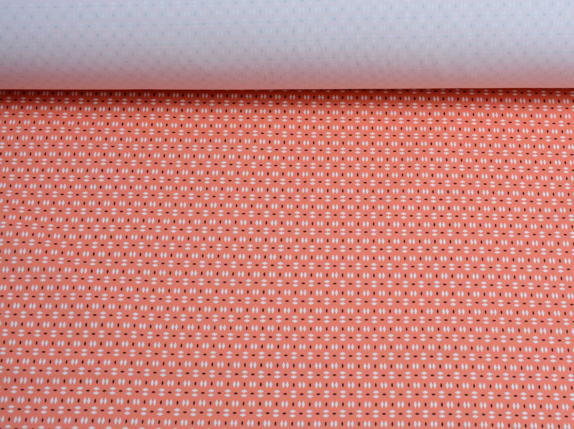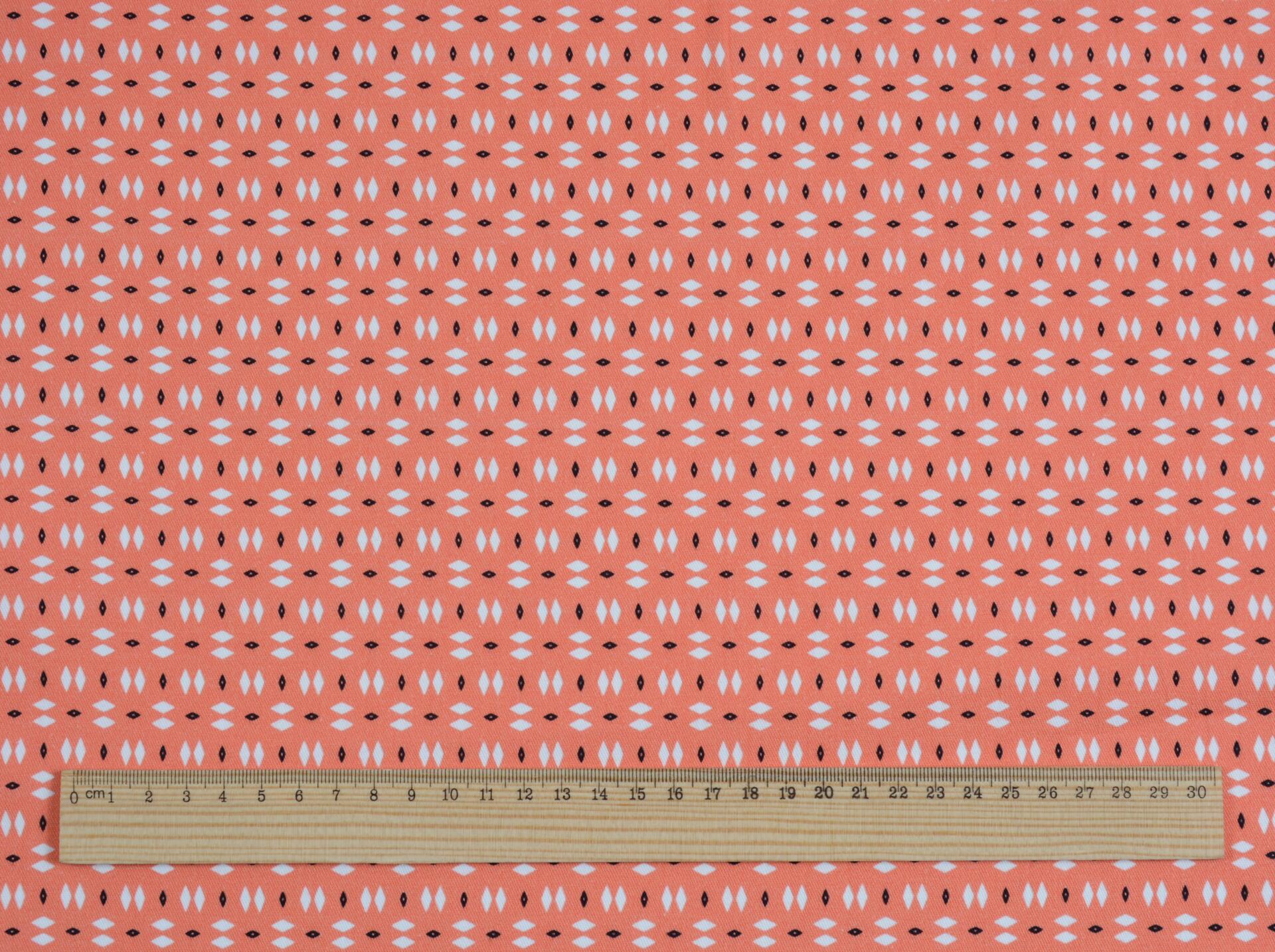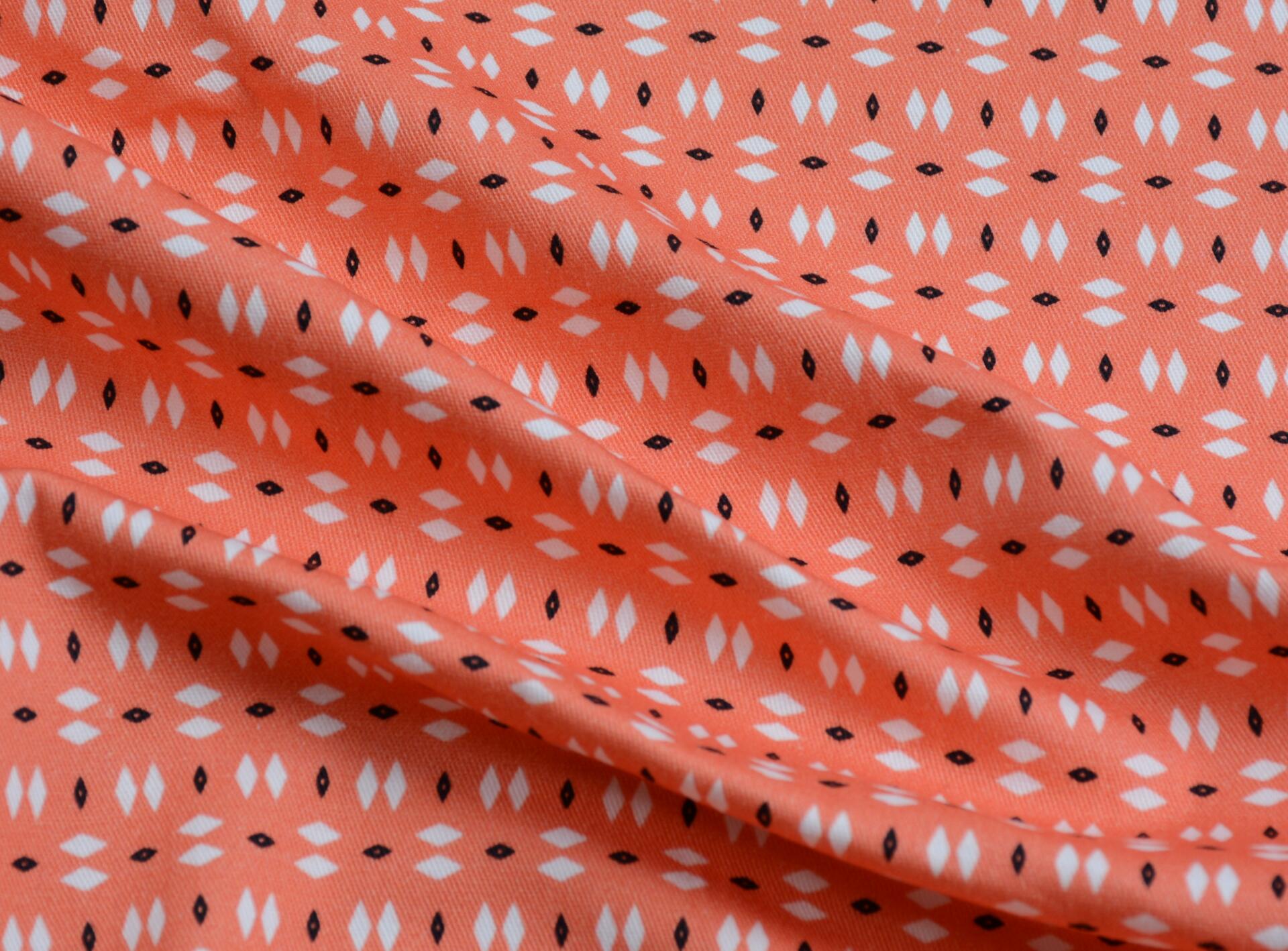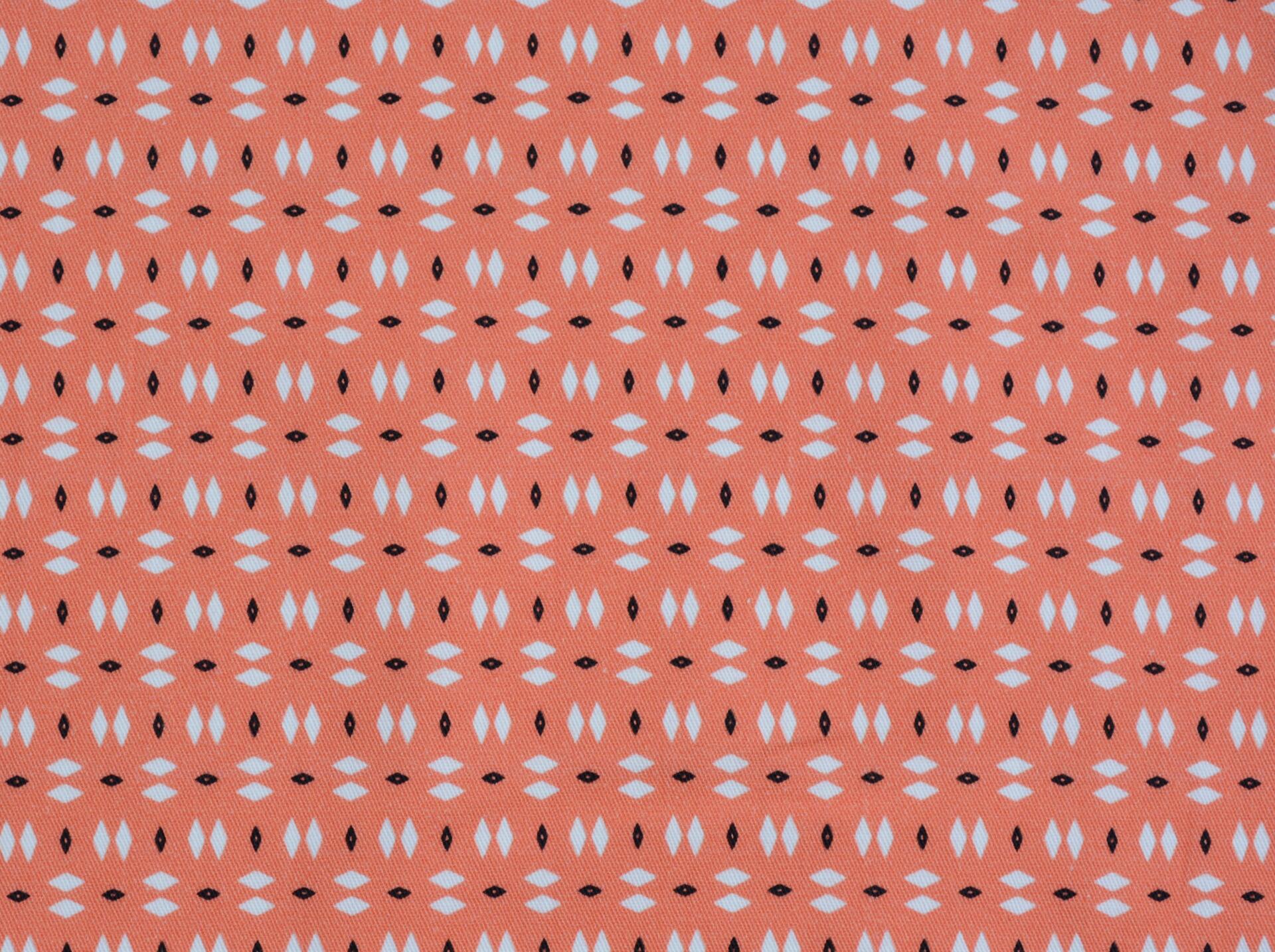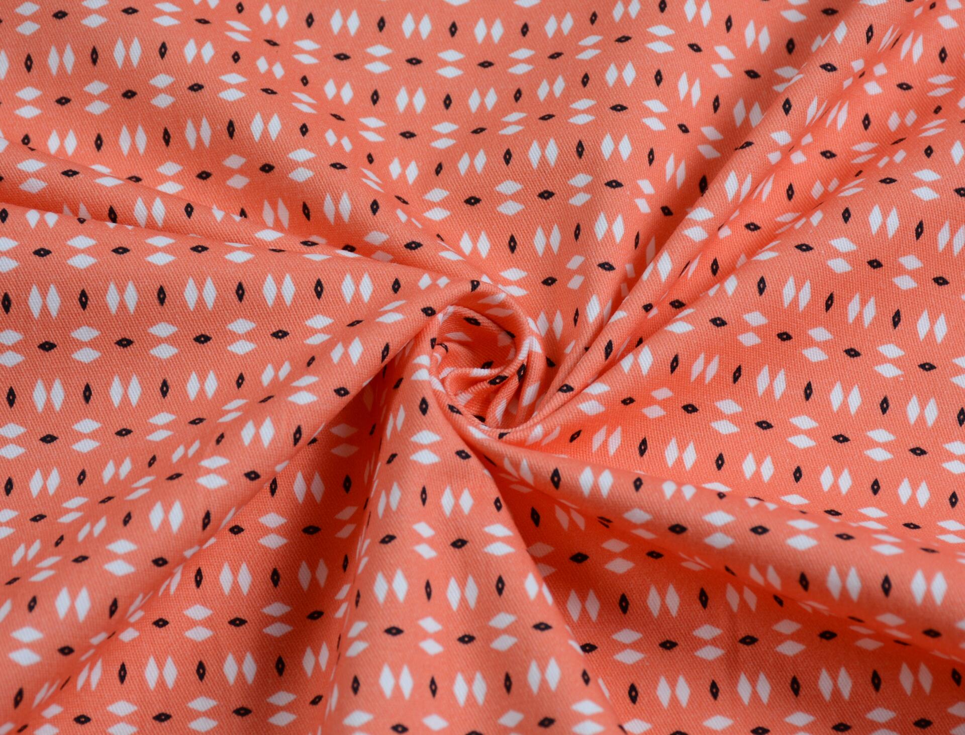 Tkanina Bawełniana Białe Romby na Pomarańczowym Tle