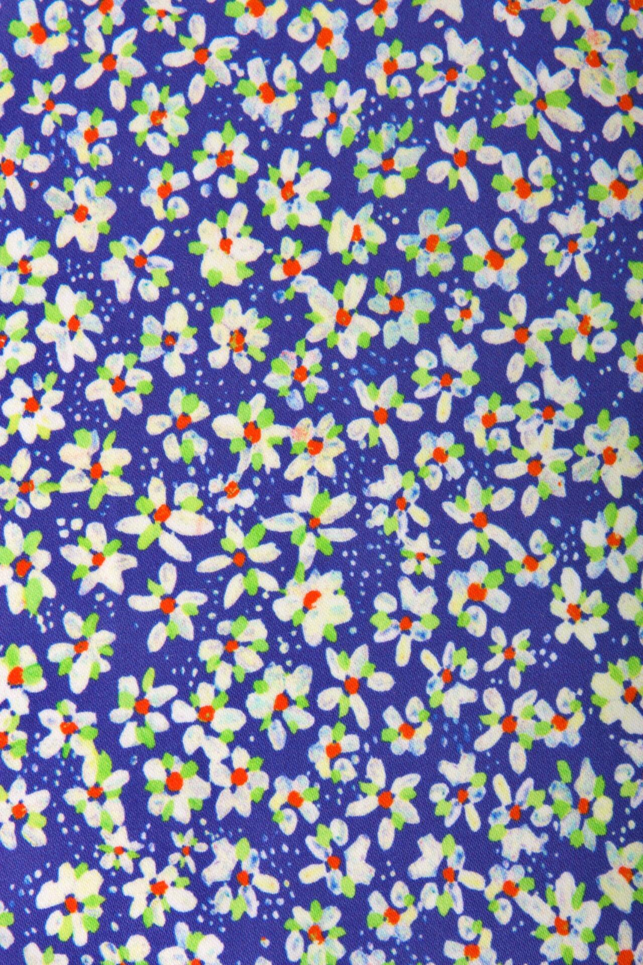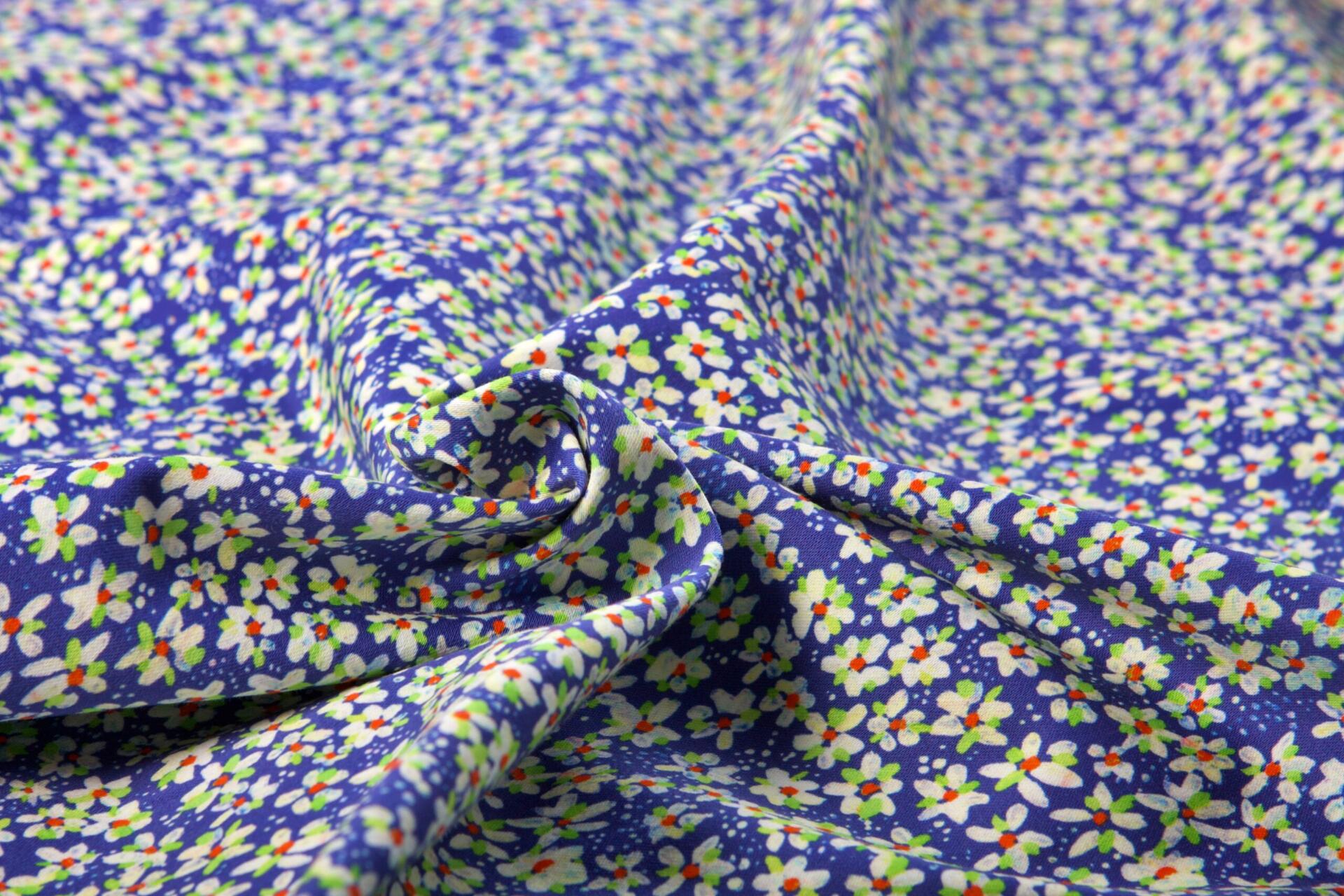 Tkanina Bawełniana Niebieska Małe Biało-Zielone Kwiaty
