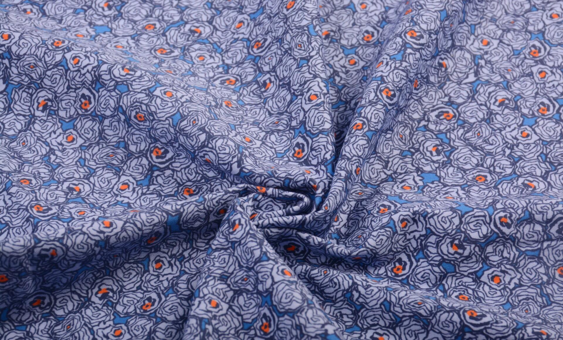 Tkanina Bawełniana Niebieska Małe Kwiaty
