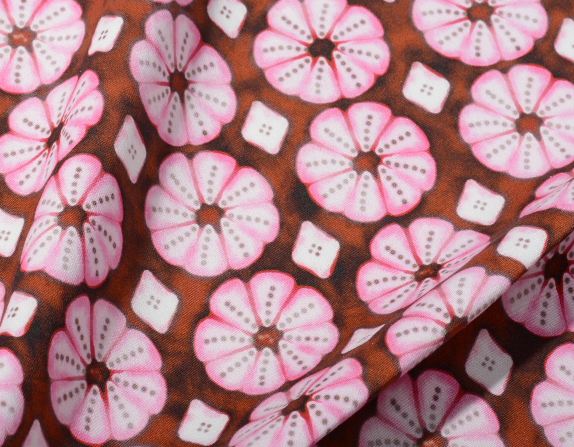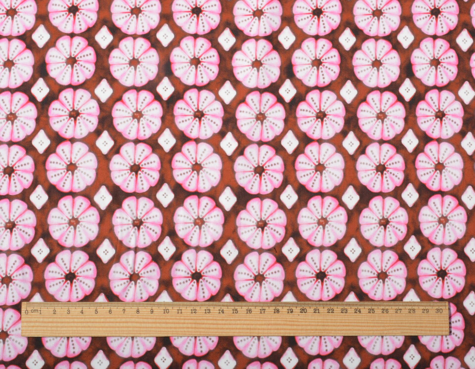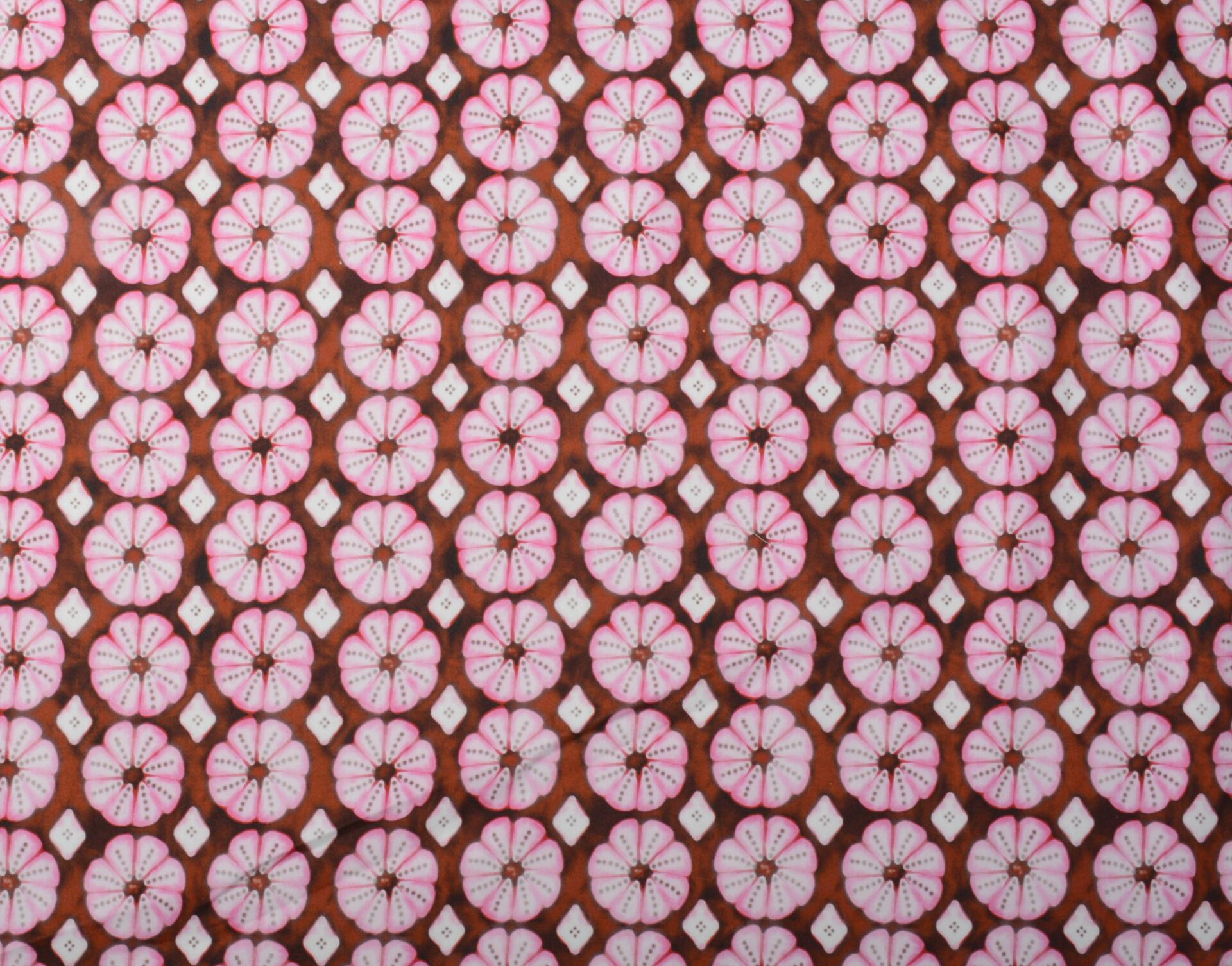 Tkanina Bawełniana Różowe Kwiaty na Brązowym Tle