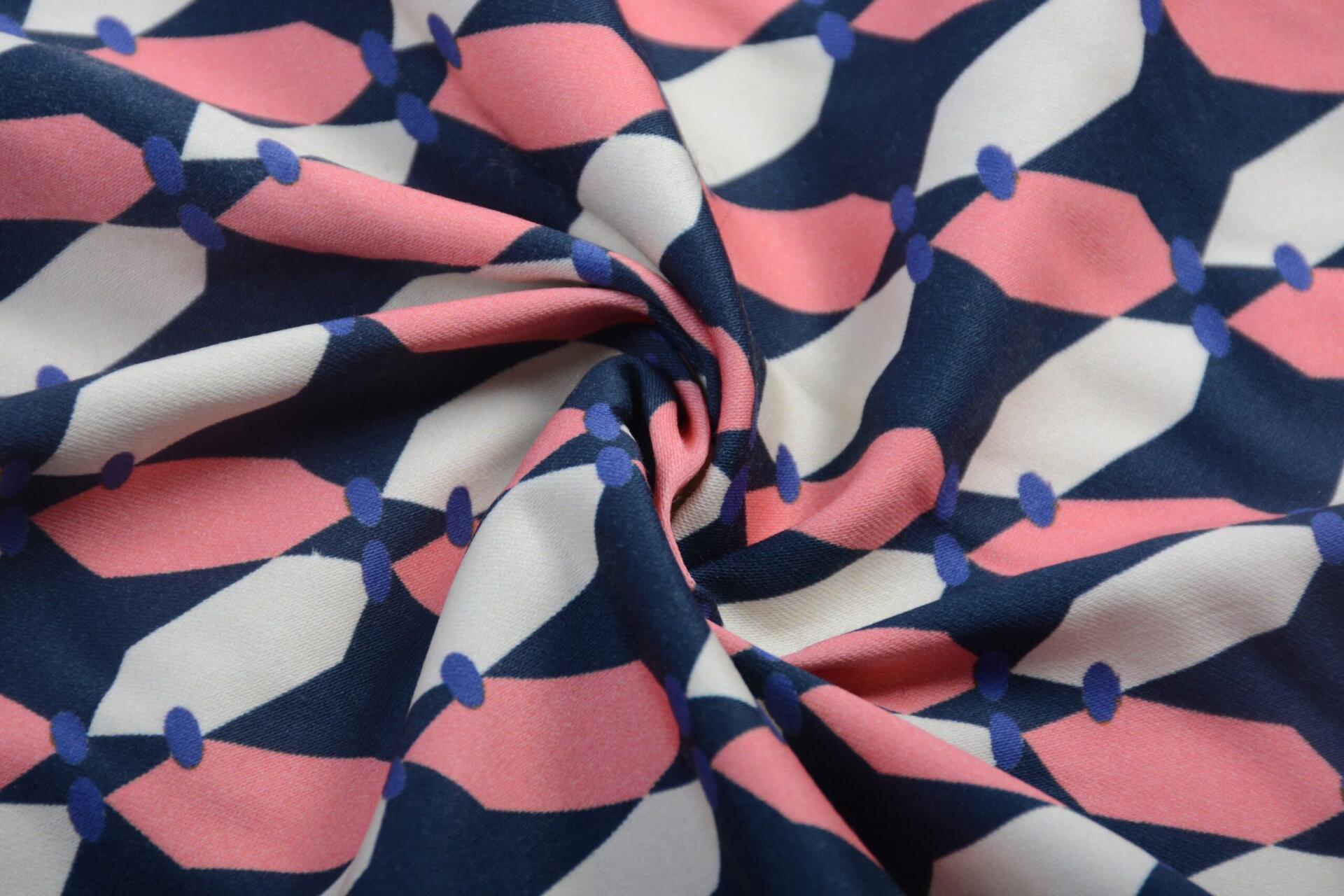 Tkanina Bawełniana Niebieska Wzór Biało-Różowy