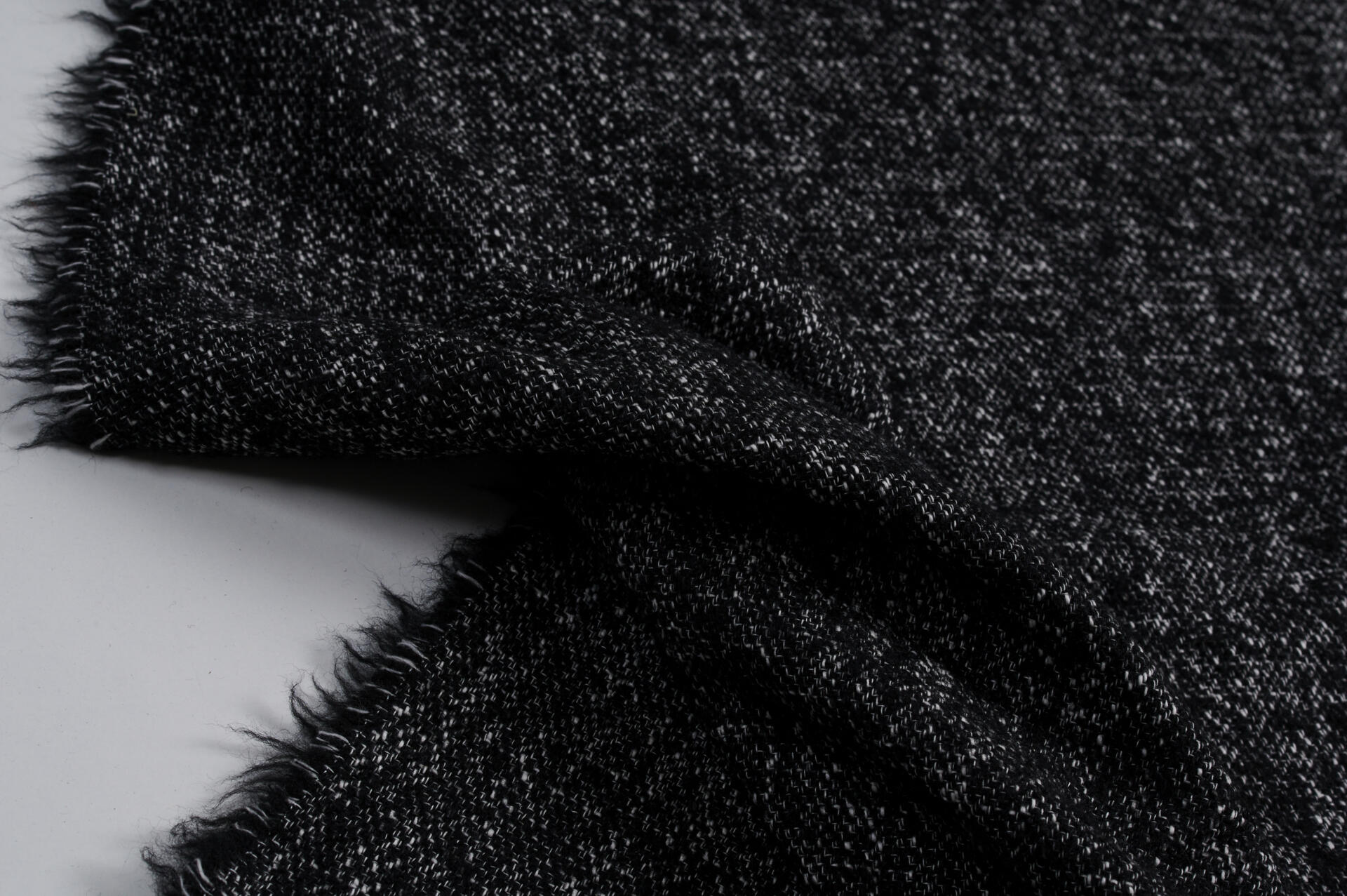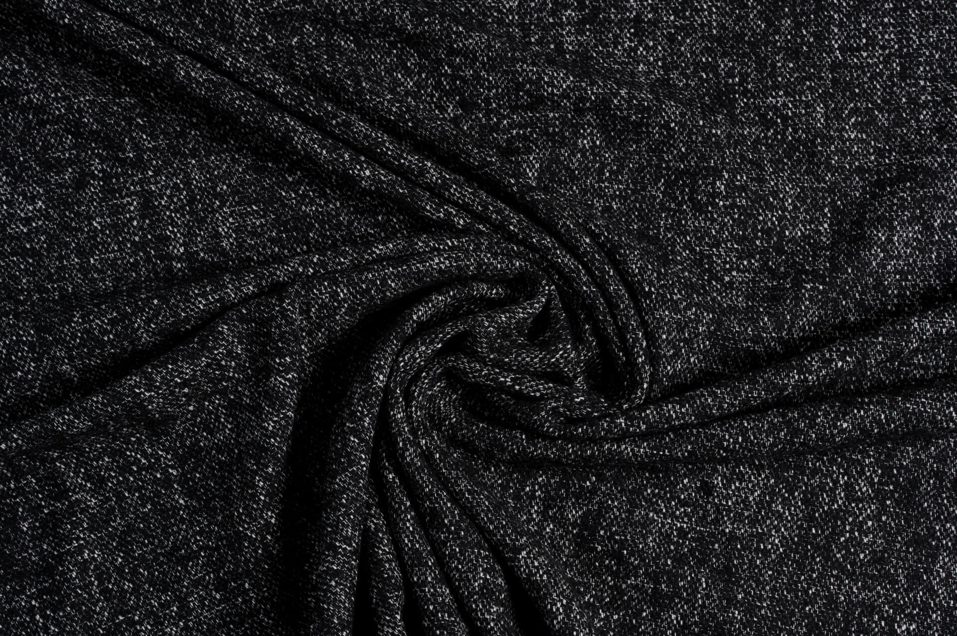Tkanina Wełniana z Bawełną w Czarno-Biały Melanż