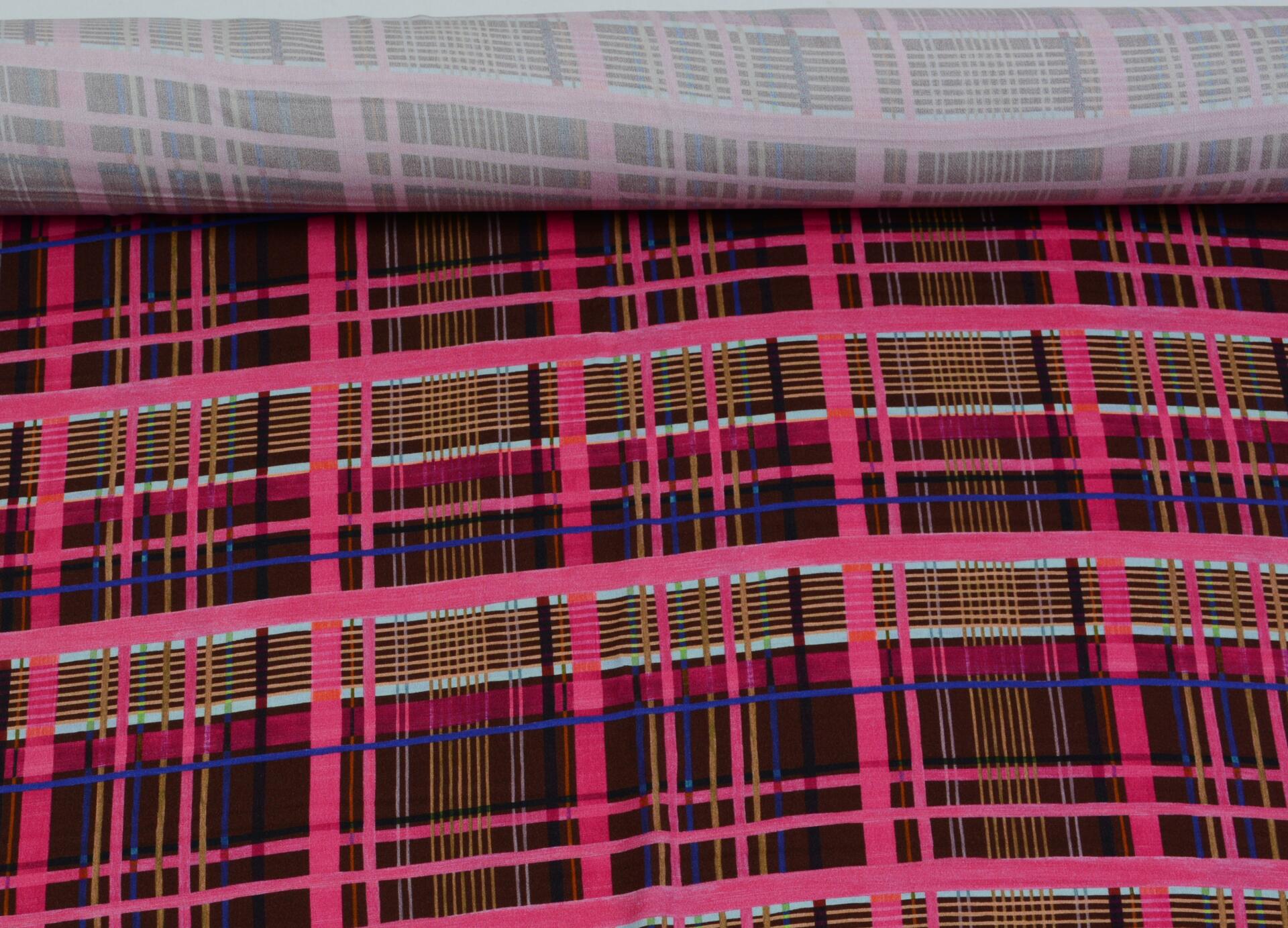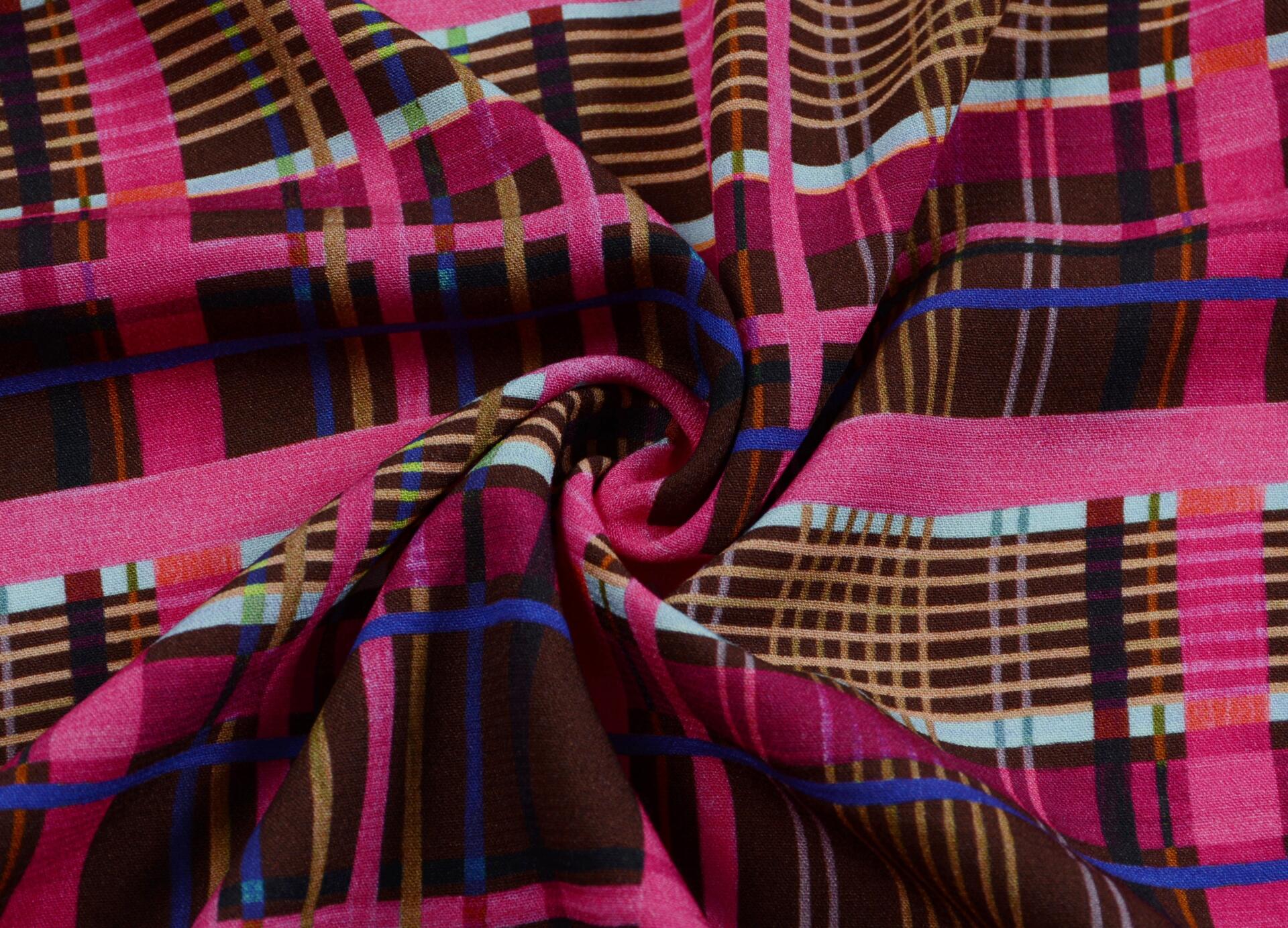 Tkanina Wiskozowa Różowa Krata